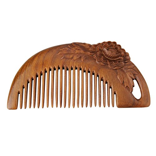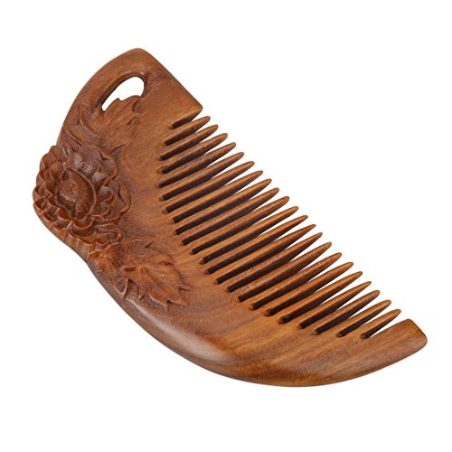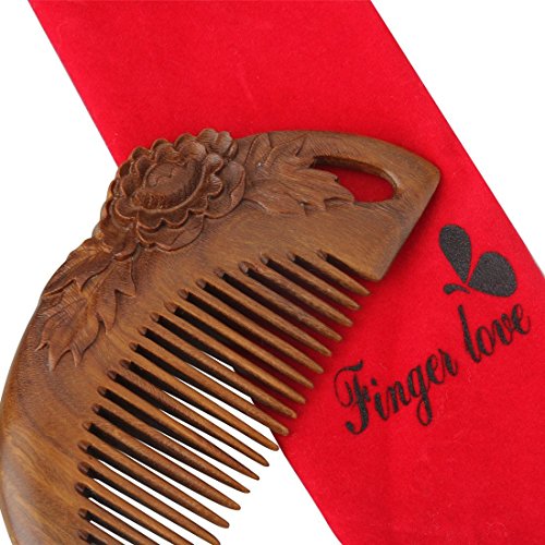 FINGER LOVE No Static Handmade Carved Natural Green Sandalwood Portable Hair Comb (B)