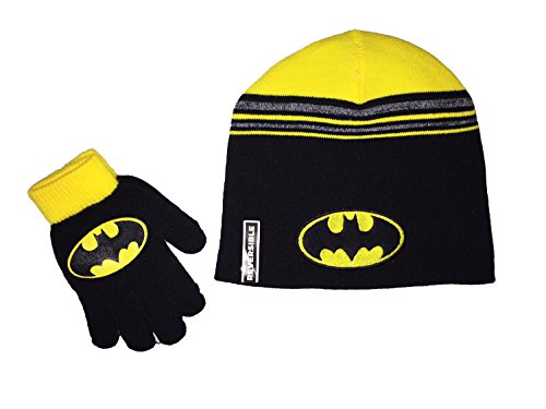 Product Description Boys will love this winter set featuring Batman and including a reversible winter beanie hat and gloves. One size boys. Officially licensed. 0