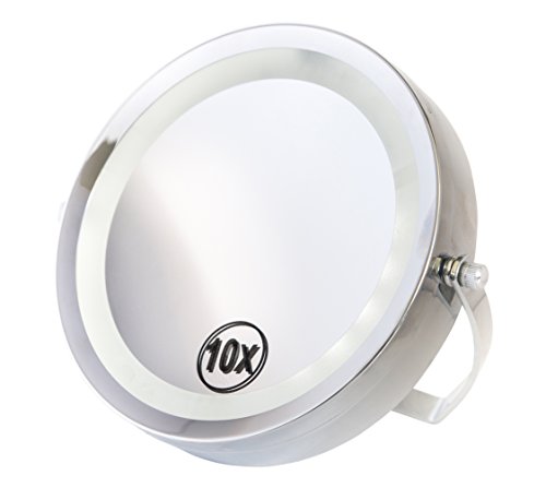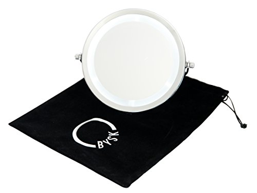 - WHILE OTHER MAGNIFYING MIRRORS are too small, flimsy, poorly lit or not double-sided, the BYSK 10X magnifying mirror offers a full-face detailed view, daylight effect LED lights and high quality reflections – both powerfully magnified and real size.
