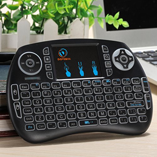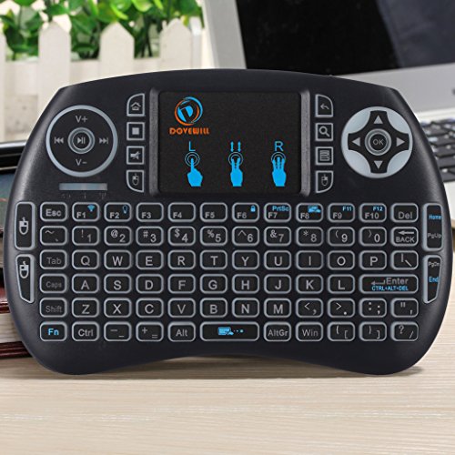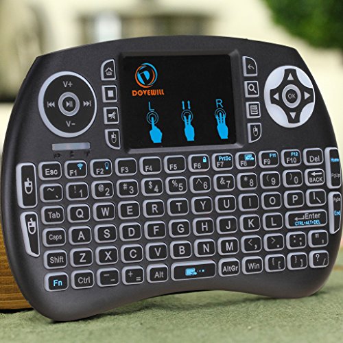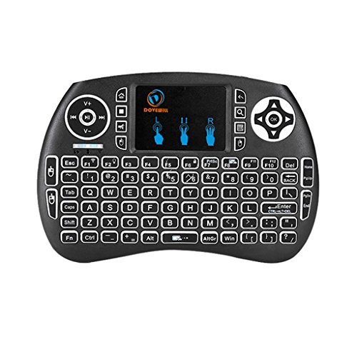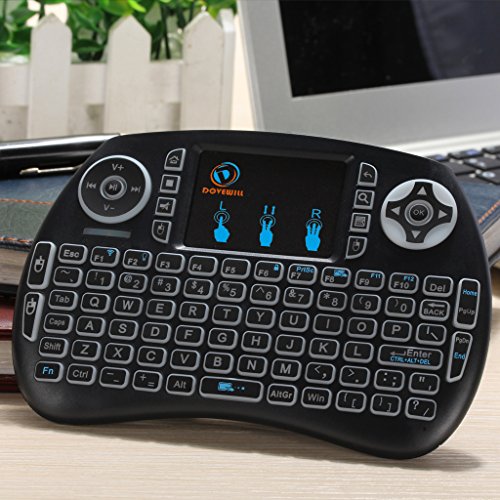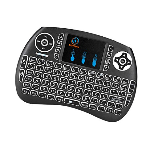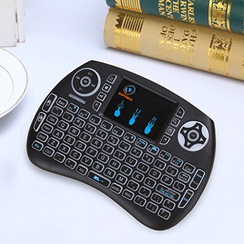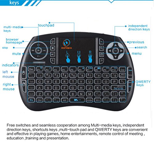 -. Feature : Mini Size,keyboard natural feeling while typing, keys have a soft touch, size of your hand with a lot of functions. / Backlight wireless keyboard: mini touchpad keypad remote is with backlights, enables you to use it freely even at night and provides you amazing colorful experience for gaming or working. / Touchpad keypad remote: Touch pad on the remote it makes it super easy to use, you could enjoy a better time when play games / Plug and play: Short-cut Key: multimedia function keys such as on/off switch, mail box, mute, mouse left, searching, open my computer, browser home page and mouse right, which can save your time and improve your working efficiency. / QWERTY full keyboard layout, support a variety of gestures and scroll bars, support multiple languages