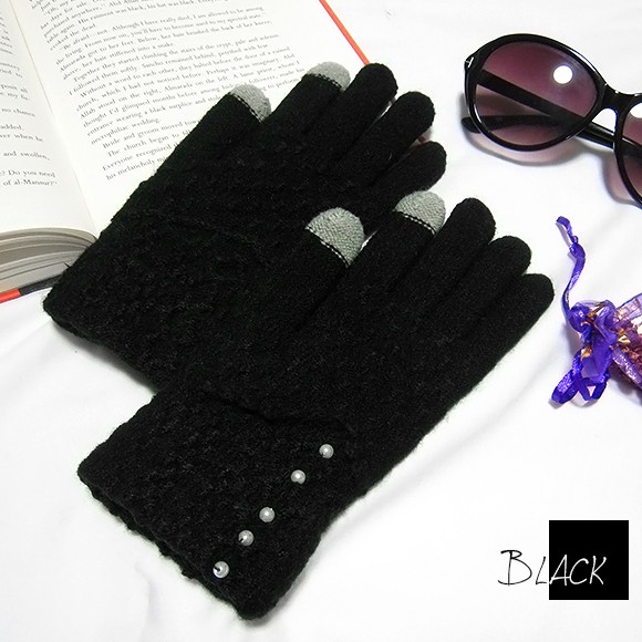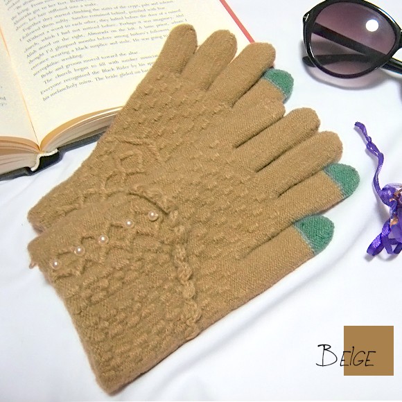 パールがポイントで防寒も可愛く♪