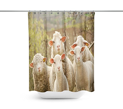 Sheep and lambs on pasture Shower Curtains,Water-Repellent & Anti-bacterial Waterproof Mildew-Resistant Fabric with 12 Curtain Hooks 72-Inch by 72-Inch