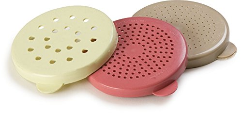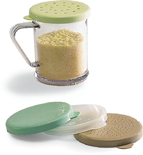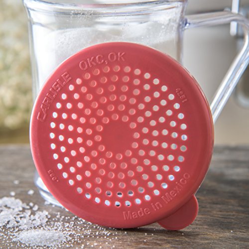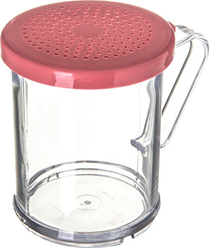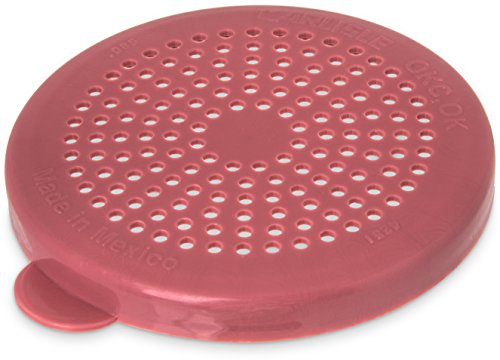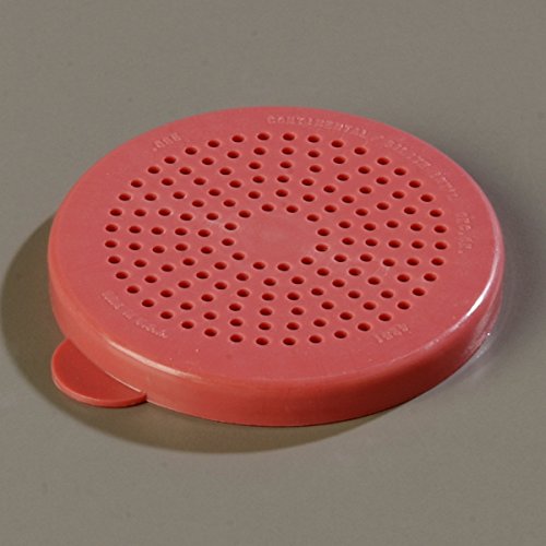 This Carlisle 425155 rose-colored lid is 3.12" in diameter and fits Carlisle 4250 shaker and dredge for salt, flour, seasonings, or dry toppings (sold separately). It is made of polyethylene for durability, and resistance to cracking. This lid has medium ground holes for dispensing contents without clogging and is microwave and dishwasher-safe.