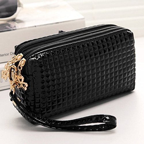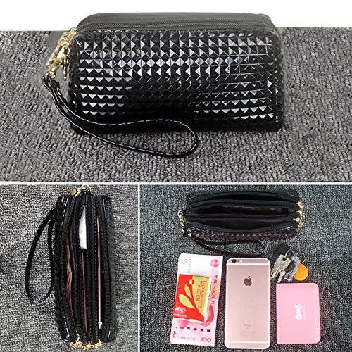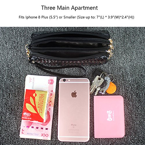 Three Main Compartments: This clutch bag has three compartments with three zippers, fits iPhone 8 plus (5.5 inches or smaller), keys, pens, lipgloss/lipstick, thin card wallet and other small documents or items. The divided sections helps keep them well organized.
