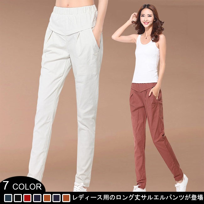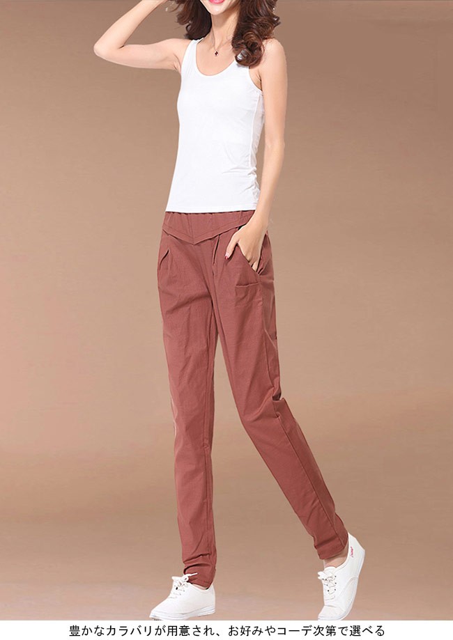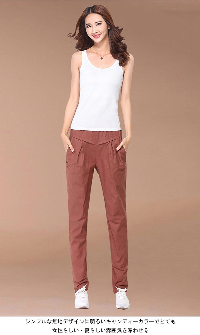 レディース サルエルパンツ ロングパンツ 体型カバー ウエストゴム 九分丈パンツ 女性用 長ズボン 春秋物 薄手 夏物 ボトムスレディース用のロング丈サルエルパンツが登場通気性・吸湿性に優れた上質な綿混紡素材を厳選、夏に最適な肌触りをもたらす工夫された腰部分のデザインは気になるお腹をカバーでき、着やせ効果抜群ゆったりし過ぎずタイト過ぎずのサイズ感にナチュラル感たっぷりのカッティングで誰でも気軽に履けるシンプルな無地デザインに明るいキャンディーカラーでとても女性らしい・夏らしい雰囲気を漂わせるカラー:ネイビー ホワイト ブルー ピンク イエロー キャラメル ブラック素材 綿混紡サイズ(cm) S M L XL 2XL 3XLS ウエスト64-84 ヒップ90 ワタリ50 総丈92M ウエスト68-88 ヒップ94 ワタリ52 総丈93L ウエスト72-92 ヒップ98 ワタリ54 総丈94XL ウエスト76-96 ヒップ102 ワタリ56 総丈952XL ウエスト80-100 ヒップ106 ワタリ58 総丈963XL ウエスト84-104 ヒップ110 ワタリ60 総丈97ご注意:※サイズは平置きサイズです。素人採寸ですので、若干の誤差がございます、ご了承くだ