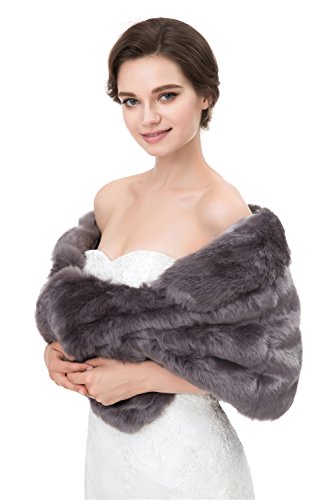 -. Title : FOLOBE レディース フェイクファーショール ストール 結婚式 パーティー お呼ばれ 成人式 披露宴 着物しらゆり 振袖用 ドレス用 大判 ファッション 秋冬 防寒 肩掛け ボレロ チョッキ 前留め