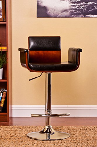 -. Brand : Christies Home Living -. Color : cherry -. Feature : Sleek and Sophisticated: Contemporary Style / Materials: Wood, metal, polyurethane / Modern Seating for the Den: Create social seating in any room / Built to Last: Chrome footplate and adjustable pedestal stand / Seat dimensions: 24-33 inches high x 18.5 inches wide x 21.6 inches deep -. Label : AC Pacific -. Manufacturer : AC Pacific -. MPN : ACBS13 -. PackageQuantity : 1 -. PartNumber : ACBS13 -. ProductGroup : Kitchen -. ProductTypeName : KITCHEN -. Publisher : AC Pacific -. Studio : AC Pacific -. Title : Bentwood Adjustable Swivel Barstool Cherry Wood Finish And Shiny Black Polyurethane And Chrome Base with Curved Seat And Back