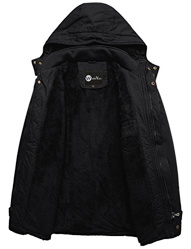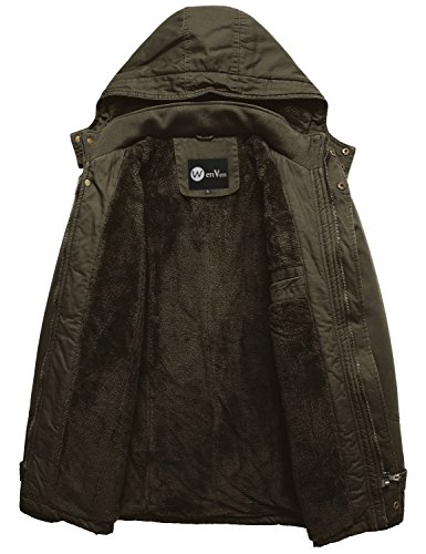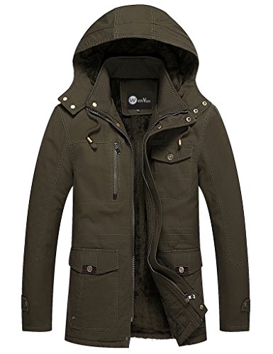 -. Feature : Full-length zipper enclosure as well as button enclosures for extra protection. Warm, fleece lining with interior pocket. / Cotton stand collar, warm fleece-lined, undetachable hood with snap and drawcord. / Cargo pockets with snaps closures plus hand pockets on the lower front, a decorative zippered chest pocket and a cargo snap chest pocket. / Unique stitching and pocket placements provide a stylish and modern look. / Perfect for everyday wear, including professional attire, business casual, or outdoor activities.(Please check our size charts (see picture) prior to purchasing to ensure correct sizing. Click on our brand name to see similar products WenVen offers.)