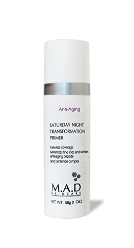 -. Binding : Misc. -. Brand : Dr. Dennis Gross Skincare -. EAN : 0616174721094 -. Feature : A light weight P.R.Imer that offers the appearance of flawless , even skin-tone combined with a powerful peptide and ceramide treatment base. / Offers lightweight tint and coverage. / P.R.Imes skin to be flawlessly make-up ready. / Can be used with or without foundation for smoother more even skin tone / ffers skin treatment properties of a powerful anti-aging peptide. Does not contain parabens or chemical colorants. -. Label : M.A.D Skincare -. Manufacturer : M.A.D Skincare -. ProductGroup : Beauty -. ProductTypeName : BEAUTY -. Publisher : M.A.D Skincare -. Studio : M.A.D Skincare -. Title : M.A.D Skincare Anti-Aging Saturday Night Transformation P.R.Imer W/ Ceramide Complex -. UPC : 616174721094