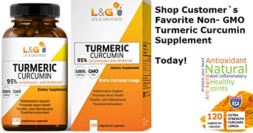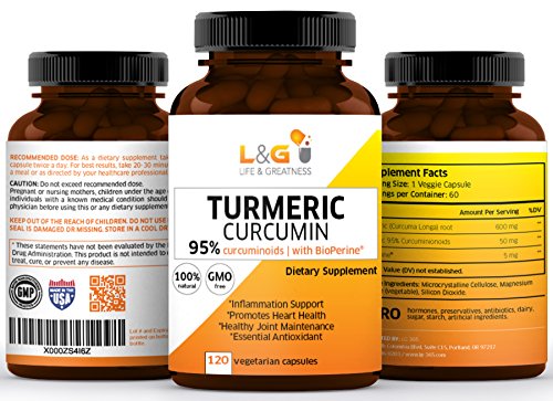 MAX STRENGTH TURMERIC CURCUMIN SUPPLEMENT PILLS Only real ingredients will generate actual results. Our Turmeric is 100% pure, Non-GMO 95% standardized Curcuma longa powder! It safe to say the body craves for Turmeric. Beyond the well-known benefits of Turmeric Curcumin, modern studies are showing new connections between Curcuma piperine capsules and other benefits like joint pain relief, best antioxidants supply, healthy heart support, skin health, brain health, eye health, and even improved memory and improved the overall immune system. So adding our L&G Turmeric Curcuma Capsules supplement to your diet lets you get this incredible nutrient most efficiently.