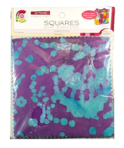 Creative Cuts 5" X 5" Squares Pack Premium Quilting Fabric, (32) Pieces, (8) Designs (Exotic Batik)