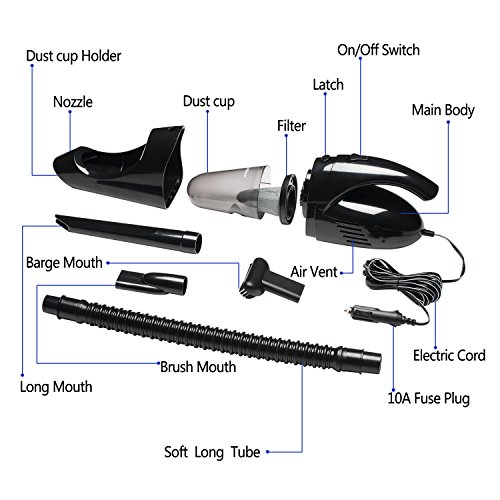 [Suitable Design] This car vacuum cleaner is of a curved and weight shape, small enough to grip over the middle or back part of it with one hand to control the direction and angle of the suction. You can clean the dirt under the seats and corners of your car easily, no more dragging out your house vacuum to clean out your vechicle.