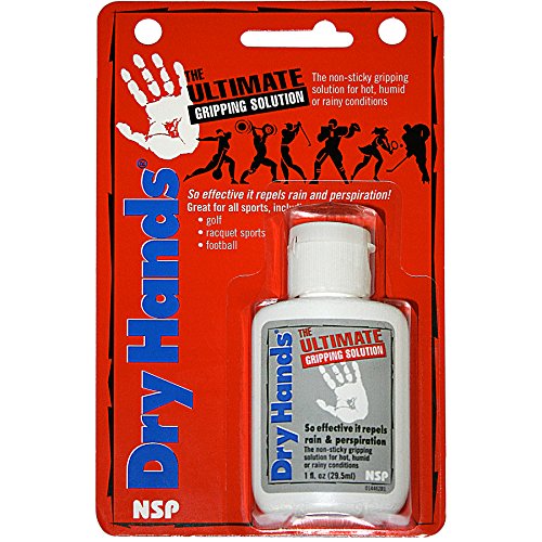 Studio : Nelson Sports Products Publisher : Nelson Sports Products Binding : Misc. Product Description DRY HANDS is a performance enhancing solution that alleviates grip problems caused by perspiration or rain. So effective, it actually repels water. Feel the difference with DRY HANDS, the most natural and comfortable grip available in sports today. DRY HANDS is used by anyone whose performance is adversely affected by wet hands from perspiration or rain - golf, tennis, bowling, baseball, football, basketball, gymnastics, weight lifting. The advantage to DRY HANDS is that it is not sticky or greasy. And since it leaves no powdery mess, you won't even realize you have it on. Best of all, it's long lasting and economical so you can concentrate on the game at hand. 0