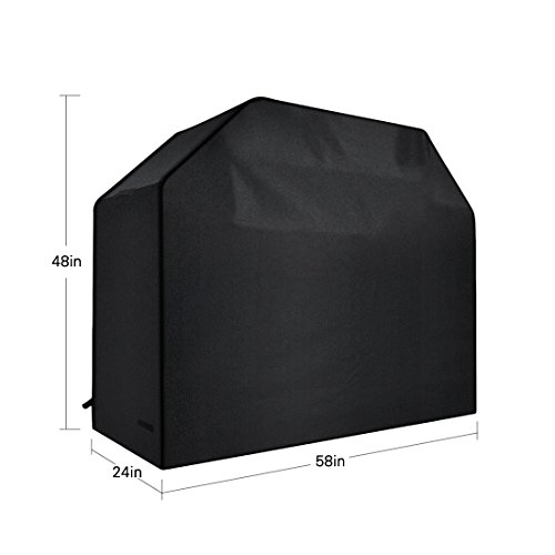 - Measured Size: Grill cover measures 58-inch x 24-inch x 48-inch, 3.6lb heavier than other brands’. The grill cover fits most brands like Weber, Holland, Jenn Air, Brinkmann and Char Broil. And won’t blown away by wind.