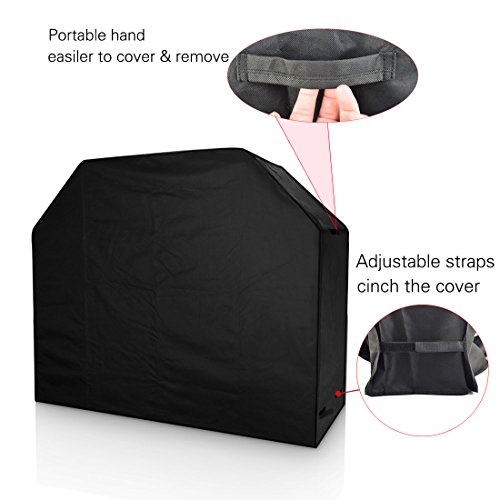 - Water & Wind Resistant: The inside cover is made of waterproof material, to prevent the rain and keep your grill dry. The convenient side velcro straps at the bottom can help tighten and prevent the gas grill cover from being blown off.