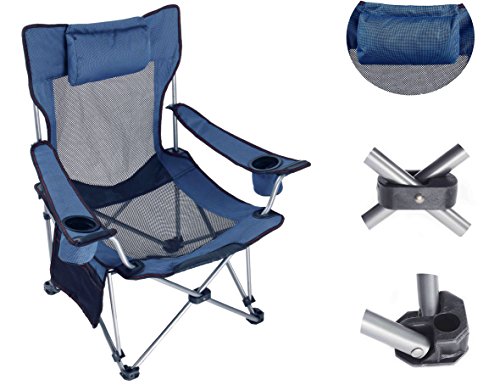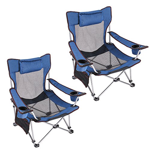 Light Weight Backpacking Reclining/Lounging Camping Folding Chair with Headrest for Outdoor Camping, RV, BBQ, Football Games (Standard Size Blue )