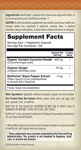 -. Title : NatureWise Organic Curcumin Turmeric Advanced Absorption Antioxidant with Ginger and BioPerine, 500 mg, 120 count