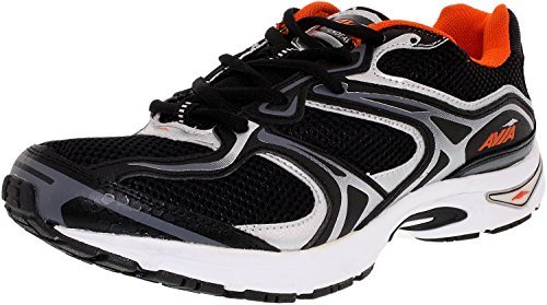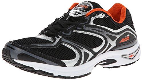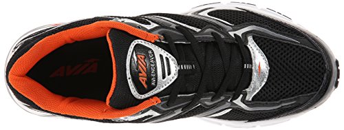 AVIA Men's Endeavour Running Shoe, Black/Chrome Silver/Signal Orange, 10 M US