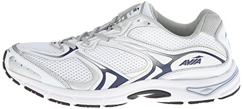 AVIA Men's Endeavour Trail Running Shoe, White/Jet Ink Blue/Chrome Silver, 12 4E US