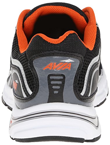 AVIA Men's Endeavour Running Shoe, Black/Chrome Silver/Signal Orange, 7.5 M US