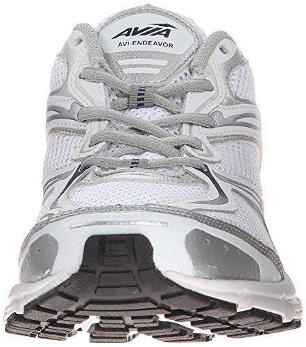 AVIA Men's Endeavour Trail Running Shoe, White/Jet Ink Blue/Chrome Silver, 9.5 4E US