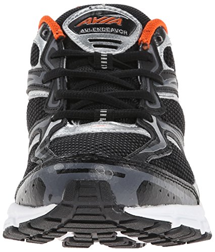 AVIA Men's Endeavour Running Shoe, Black/Chrome Silver/Signal Orange, 8 M US