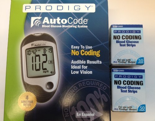 -. Title : Prodigy AutoCode Talking Glucose Meter with 100 Test Strips - 4 Language Meter