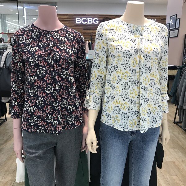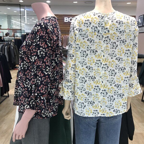 꽃프린트 쉬폰 블라우스입니다