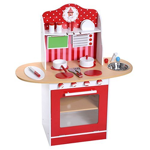 -. Title : Costzon New Kids Wood Kitchen Toy Cooking Pretend Play Set Toddler Wooden Playset Gift