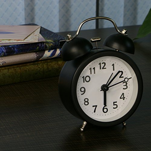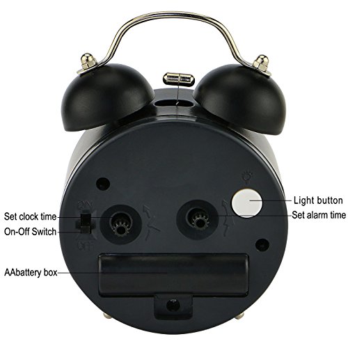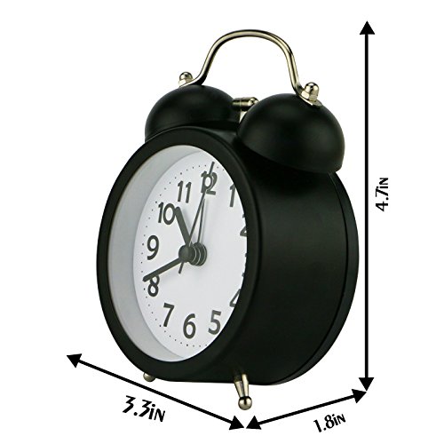 Studio : PILIFE Publisher : PILIFE Binding : Kitchen Product Description Product Features: * Retro style takes you back to 80's. * Easy setting perfect for kids and seniors. * Non-ticking, completely silent, ideal for those who need complete silence to fall asleep. * Loud alarm ringing for people who are heavy sleepers. Night light is perfect at night. Specifications: * Weight: 0.18 kg * Type: Twin Bell Alarm Clocks * Nightlight: Press Light Button * Function: Alarm and Night Light * Movement: Smooth Sweeping Quartz * Powered by: 1x AA Battery (not included) * Product Dimensions: 3.3" Diameter;4.7" Tall; Package: 1x Silent Twin Bell Alarm Clock Noted: 1. The two buttons to set time and alarm are designed that way. Please don't mistake the special design for the sign that they're broken or of poor quality. 2. Please use 1 AA carbon zinc battery only (alkaline battery or rechargeable battery which may have influence on the life span of clock movement, as well as the accuracy of the time). 3. There are slight difference between the picture and the real item caused by light brightness. 0