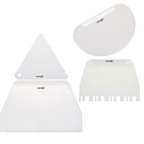 COSMOS Set of 4 Plastic Cake Edge Side Decorating Comb Cake Scraper Smoother Cutter Set