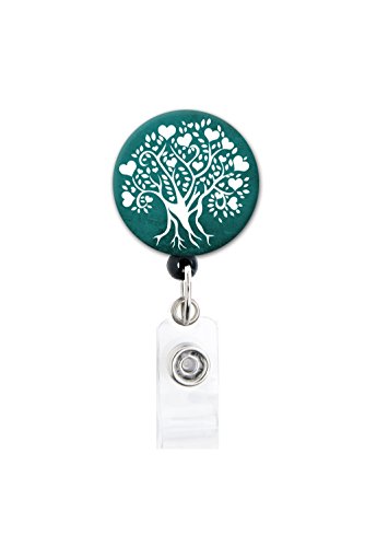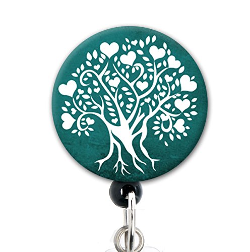 Heart Tree Teal - Retractable Badge Reel With Swivel Clip and Extra-Long 34 inch cord - Badge Holder