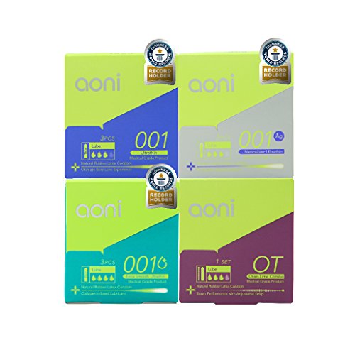 Aoni Condoms: Four Play - Ultrathin 001 3pcs, Nanosilver Ultrathin 001 3pcs, Extra Smooth Ultrathin 001 3pcs and Over-Time Combo 1set
