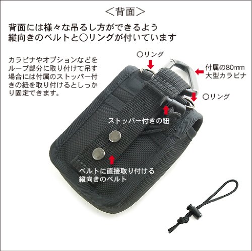 There are loops and ○ ring for attaching directly to the belt on the back of the main unit, and various hanging methods can be made according to the scene.