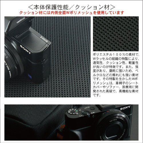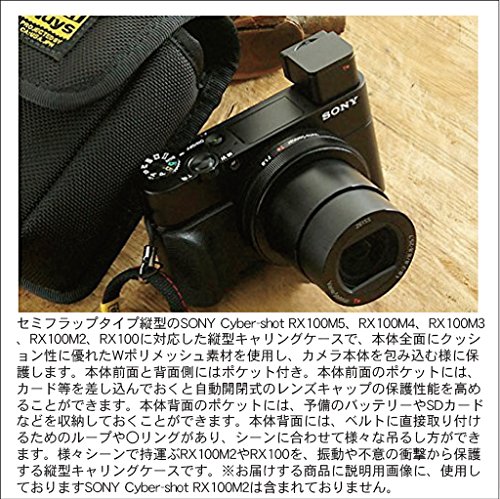 Semi-flap type Vertical carrying case compatible with vertical type SONY Cyber-shot RX100M5, RX100M4, RX100M3, RX100M2, RX100, using W polymesh material excellent in cushioning property on the whole body, wrapping the camera body