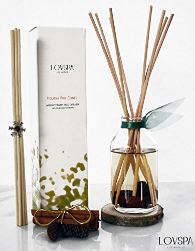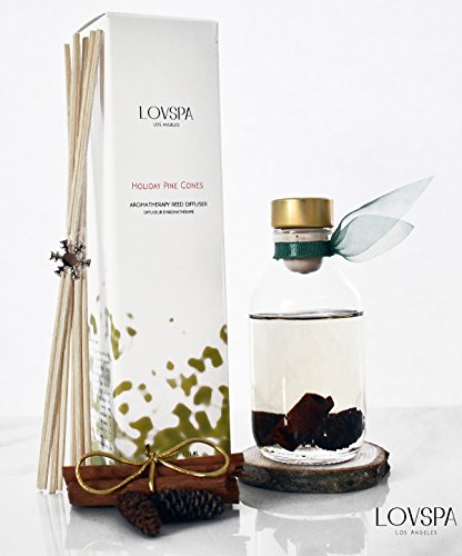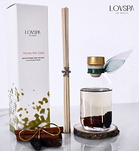 Lightning Deal! Cinnamon Pinecones Reed Diffuser Gift Set by LOVSPA | Woody Pine cones. Homey Woods. Fir Needles. Warm Cloves. Sandalwood | Wood Coaster Included! Rustic Decor Candle Alternative