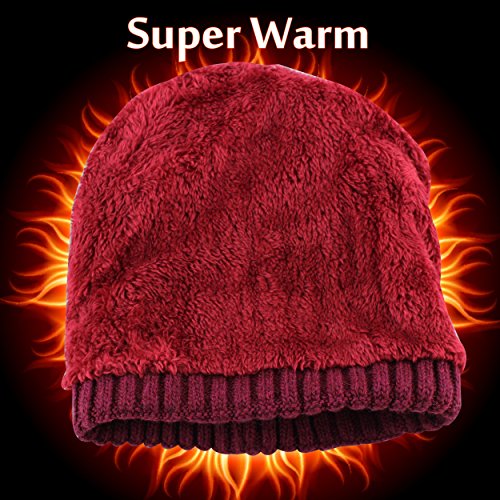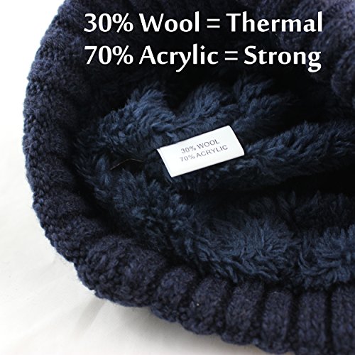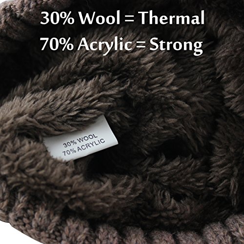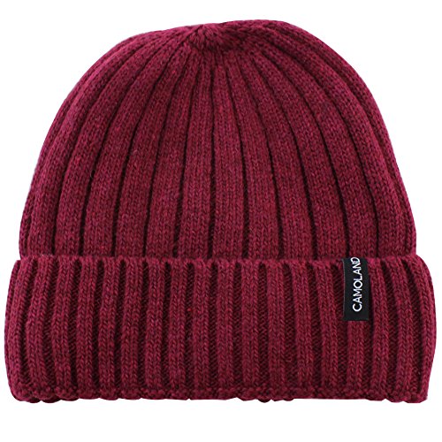 CAMOLAND Men's Fleece Wool Cable Knit Winter Beanie Hat
