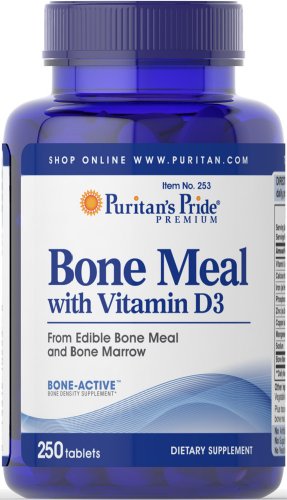 -. Binding : Health and Beauty -. Brand : Puritan's P.R.Ide -. EAN : 0074312102530 -. Feature : We are the manufacturer and the only authorized seller of this product. / This product has been made with the highest quality ingredients available. / Over 40 years in business and 19 million customers served. / Satisfaction guaranteed or your money back. -. Label : Puritan's P.R.Ide -. Manufacturer : Puritan's P.R.Ide -. MPN : 253 -. PackageQuantity : 1 -. PartNumber : 253 -. ProductGroup : Health and Beauty -. ProductTypeName : HEALTH_PERSONAL_CARE -. Publisher : Puritan's P.R.Ide -. Studio : Puritan's P.R.Ide -. Title : Puritan's P.R.Ide Bone Meal with Vitamin D-250 Tablets -. UPC : 074312102530