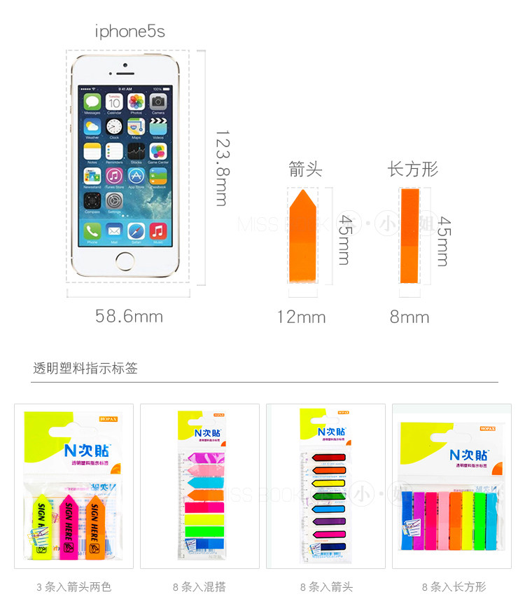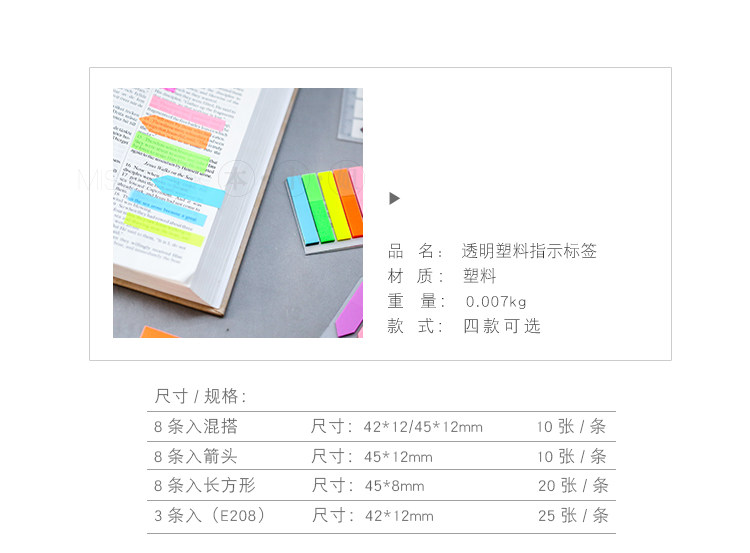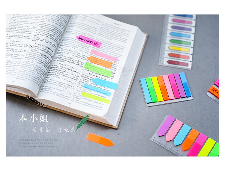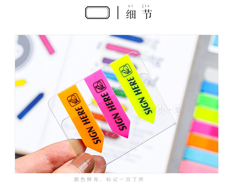 透明塑料指示贴 可撕彩色标签贴 学习办公记事N次贴