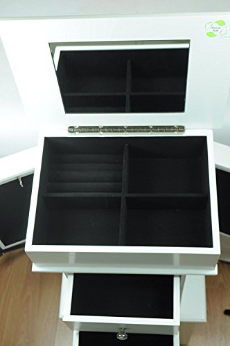 -. Title : Uniware Elegant Wood Jewelry Cabinet with 4 Drawers, Mirror and Legs, White
