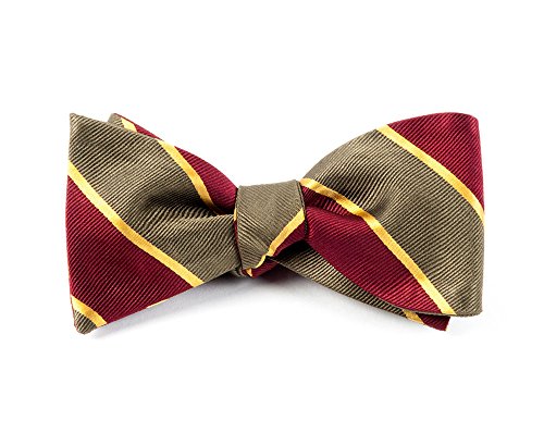 100% Woven Silk Olive and Burgundy Striped Self-Tie Bow Tie
