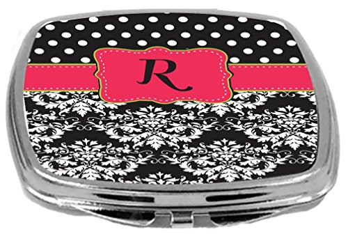 Rikki Knight Initial R Damask Dots Design Compact Mirror, Pink Green Black, 17 Ounce