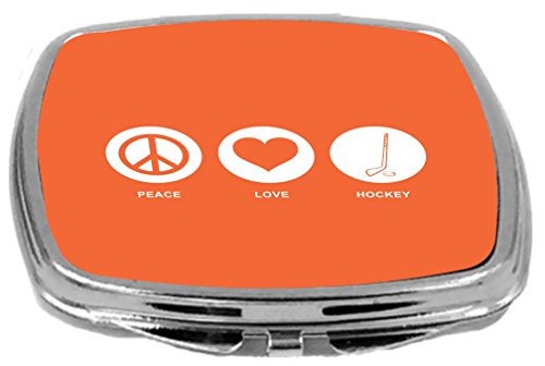 Rikki Knight Peace Love Hockey Design Compact Mirror, Orange, 2 Ounce