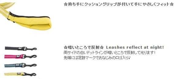 手にやさしくなじむやわらかいクッショングリップが付きました。夜のお散歩でも大活躍する反射付きリードです。