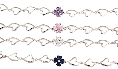 Silver Color Copper Anklet with Clover - Simulated White Sapphire - Clear CZ stones - (9 Inches)