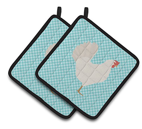 Caroline's Treasures BB8014PTHD Leghorn Chicken Blue Check Decorated Pot Holder, 7.5" x 7.5", Multicolor