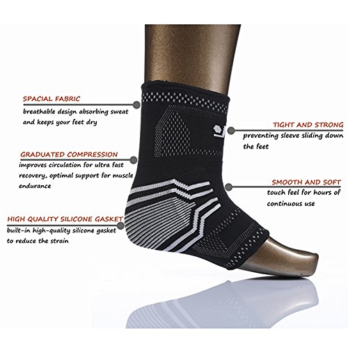 -. Feature : REDUCE PAIN & JOINT RECOVERY: Our ultra comfortable compression ankle sleeve help to relieve pain & discomfort in your foot . Best treatment for plantar fasciitis, achilles tendon, stress fracture, edema, splint, swelling, metatarsal, heel pain symp. / SUITABLE FOR ALL SPORTS ACTIVITIES: Our compression ankle braces are the perfect fit for any activity requiring ankle movement, including Baseball, Basketball, Cross fit, Soccer Golf, Hiking, Running, Tennis, Volleyball and more! / PREMIUM QUALITY: Easy to wear, our light, soft unisex elastic ankle sleeve keeps you dry and comfortable even with long use and make it easier to be worn all day throughout the night. / CONSULT OUR SIZE CHART: Choose the best athletic ankle brace suitable for men,women and kids. / 100% MONEY BACK GUARANTEE: The high quality recovery ankle sleeves are tested for many times. If you are not satisfied for any reason, we will replace or refund your purchase immediately. ORDER YOUR SET TODAY, RISK FREE!