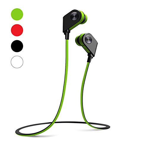 -. Feature : SMART MAGNET CONTROL - Intuitive design that let's you turn on the device effortlessly and pair without any hassle - simplyseparate the earpieces connected through magnetic force to switch on the bluetooth, and make the wireless earphones available for pairing. Similarly, to turn off the bluetooth, gently bring them closer - thanks to the Ingenious Magnetic Induction Button. / HIGH CLARITY - Advanced bluetooth audio profile transmission (HSP,HFP,A2DP,AVRCP)results in superior quality stereo sound for pleasant beats, and ADVANCED NOISE CANCELLATION using CVC 6.0 technology ensures clear lyrics without losing subtleties of music, making these wirelessbluetooth headphones an incredible choice. Built-in Microphone also helps take HANDS-FREE CALLS. / ERGONOMIC & EASY TO USE DESIGN - Shark-fin in-ear design ensures that the wireless headphones snugly fit your ears yet feel extremely comfortable - SWEAT-PROOF DESIGN,no slipping & no need for frequent adjustments make them ideal as sports headphones, gym earphone&running earphone too. Moreover, with Bluetooth V4.1 + EDR wireless transmission protocol it offers seamless connectivity upto 10 m, and MULTIPLE-POINT CONNECTION allows simultaneous pairing with 2 devices. / INCREDIBLE PERFORMANCE - Built-in 100 mAhrechargeable battery of our bluetooth earphonesoffers a playback time of upto 8 hrs, a talk time of 6 hrs, and a standby time of 120 hrs (approx) - the battery itself can be fully charged in just 2.5 hrs. Moreover, it has a low power indicatorto show battery status - connect phone via bluetooth & easily find out when the battery needs recharging. The headphones (bluetooth) even come with a caller ID function to report in English voice. / GIFT WITH GUARANTEE - Packaged in a classy gift box, this also makes for an ideal gift for any friends, family or colleagues - available in BLACK + GREEN COLOR these are equally suitable as bluetooth headphones for women, men, girl or a boy! Moreover, we also offer a 100% RISK-FREE SATISFACTION GUARANTEE to let you buy with confidence; no questions asked.