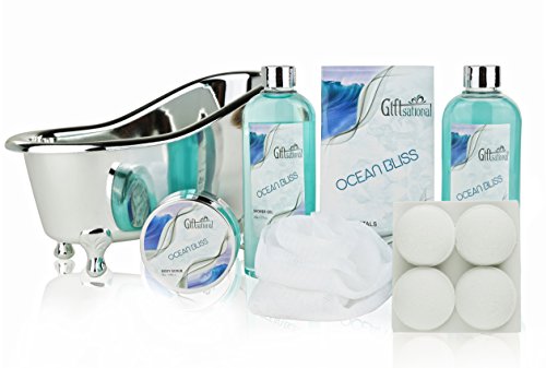 -. Title : Spa Gift Basket with Refreshing Ocean Bliss Fragrance - Best Wedding, Birthday, Anniversary or Graduation Gift for Women -Bath Gift Set Includes Shower Gel Bubble Bath, Bath Salts Bath Bombs and More!