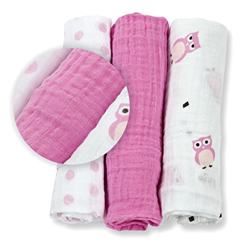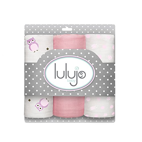 LULUJO BABY MUSLIN CLOTHS, OWL ALWAYS LOVE YOU/PINK, MINI, 3 COUNT
